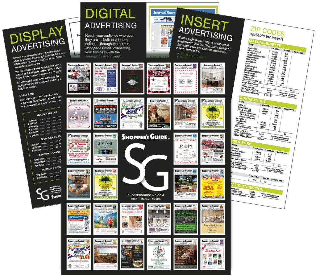 The Shopper’s Guide’s mission is to strengthen the “local” commerce of the Southern Berkshires by providing an affordable and effective way for buyers and sellers to exchange goods and services.