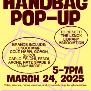 Join us at SALA in West Stockbridge for a special pop-up handbag sale! Proceeds benefit the Lenox Library Association, supporting library programs, materials, and services for our community. Browse a…
